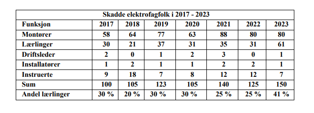 Statistikken er hentet fra Elsikkerhet nr. 96 (utgitt mars 2025)