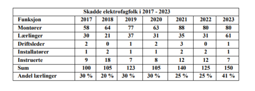 Skadde elektrofagfolk i 2017-2023