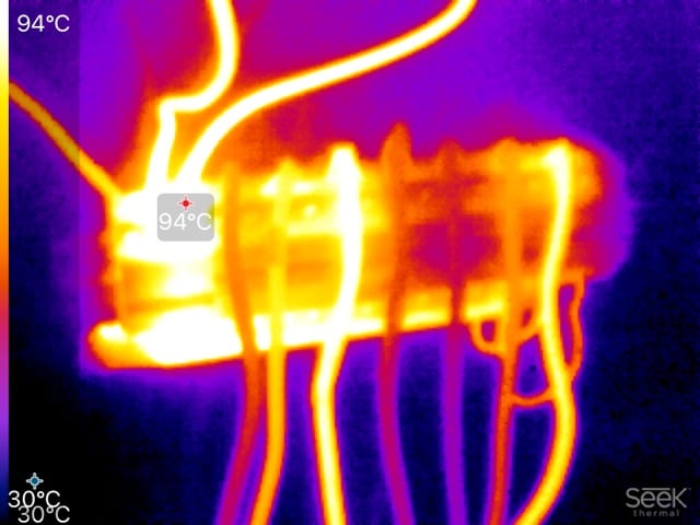 Et bilde som indikerer varmgang. Ved slike temperaturer kan isolasjonen svekkes og risikoen for brann øker betydelig hvis feilen ikke utbedres.