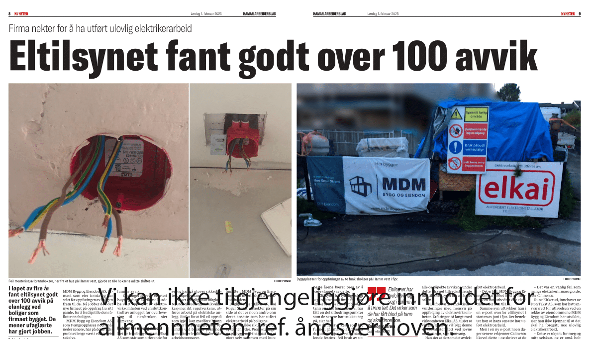 Tips Det lokale eltilsyn om farlige elektriske installasjoner, og om personer eller virksomheter som arbeider ulovlig med elektriske installasjoner!